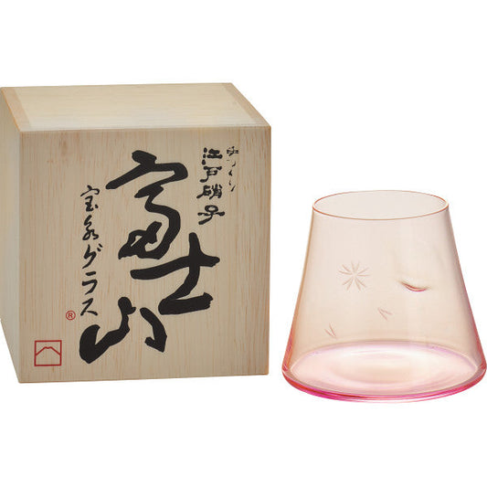 田島窯 江戸硝子 富士山 宝永グラス(木箱入)さくら色【送料無料】