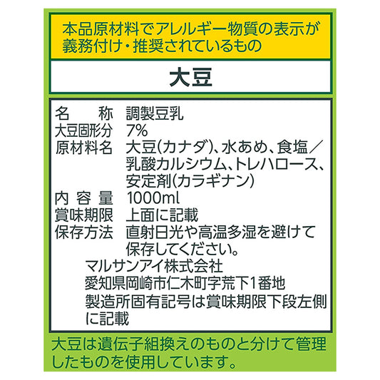マルサンアイ 毎日おいしい無調整豆乳 1L